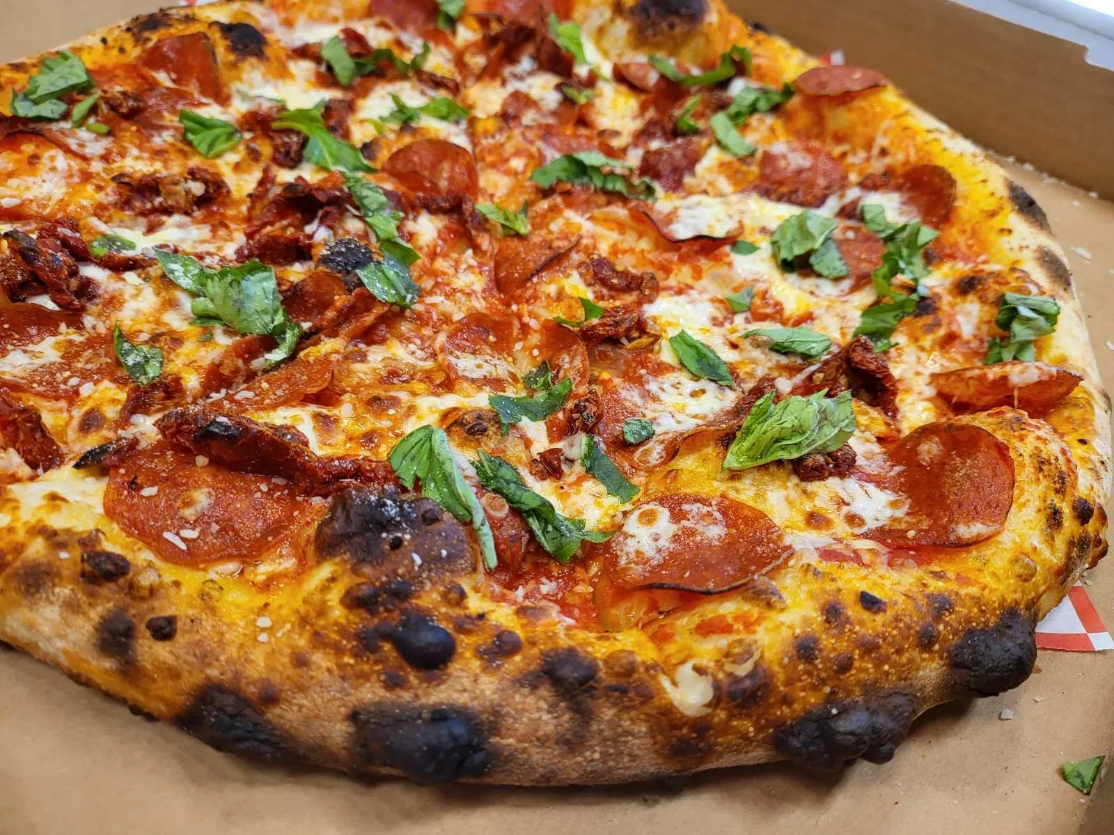 We start with the best ingredients—imported Italian 00 flour, rich San Marzano tomato sauce, and creamy Grande cheese—and bake each pizza in a blazing hot brick oven. This combination creates the perfect balance of a tender, flavorful interior and a beautifully blistered crust that’s crispy yet light.